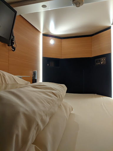 Read moreThis was our first capsule hotel experience and it was an extremely good one. The place was very clean, well organized, and comfortable. It's in a great location (check out the new vegan-leather shoe shop down the street) with lots of places to eat nearby. Breakfast was very good (buffet style with Japanese and more 'western' items available), and you're free to fill up on calories before heading out for the day. The capsule rooms were quiet and comfortable (I'm a bit bony so the firm mattress is the only thing that stops this getting a five star rating, but maybe that's as much my problem as the venue's) and my other half slept like a log in the next capsule. Showers and bathroom facilities were very good indeed - be aware that these are mixed dorms, so the bathrooms are also mixed in case that's an issue for you. We'd advise reading a bit about capsule hotels before booking as some non-Japanese guests looked bemused. Would definitely recommend...
