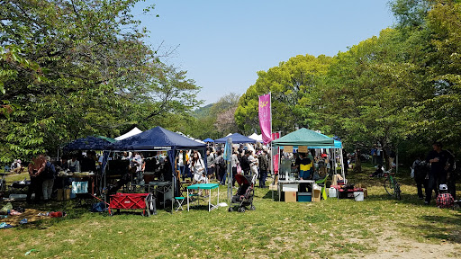 One of the few Hiroshima parks with more grass than concrete, good river access (SUP, kayak + other water boats popular here), good playground,lots of space for kids (+dogs) to run, lots of trees to enjoy picnics under any sunny day of year- especially beautiful in Spring + Autumn.