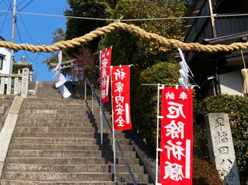 丘の上に立地。縄文通りを利用すると自動車で神社まで行けるが、やや道が狭く、広い通りから縄文通りが奥まった所にあるのでご注意。駐車場はままひろい。お名前にある早稲とは、早く成長収穫できる稲なんだな。銀山城(安佐南区祇園)城主、武田元繁公により、1511年開基のお社らしいぞ。わざわざ小山を造成しその上に建てられたそうな。昭和32年に工事中、境内から7000〜8000年前の縄文時代の遺跡や、1900年前の弥生時代の古墳が見かったそうな。 当社は牛田の総鎮守。御祭神は、九州の熊襲(くまそ)征伐の途中、崩御なされた第14代仲哀天皇。その奥方で三韓征伐に身重で出かけ、闘わずして勝利したなどド根性伝説で有名なゴッド姉様、神功皇后。その皇子である第15代応神天皇こと八幡さま。摂社に、国造の神、大物主大神、導きの神である猿田彦(さるたひこ)命、食物の神である稲荷三神が一、大宮女(おおみやのめ)命、稲荷三神の親分、ウカノミタマノミコト(お稲荷さん)など。猿田彦命は、稲荷三神が一、佐田彦命と見なされることもある。[おおみやめのみこと]は、[さるたひこのみこと]の奥方、[あめのうずめのみこと]と目されることもある。神功皇后こと、[おきたらながしひめ]は、広島のあちらこちらに足跡が残っており、諸説あるものの1900年くらい前の人らしいそうじゃ。さて、境内の古墳から発見された遺骨の御人もほぼ同じ時期のお方なので、神功皇后と顔見知りであったかも知れませんな。 年に60日ほとある一粒万倍日には、特別な御朱印が頂けるんじ...