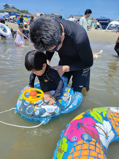 A small but nice and calm beach (Bay Area). Very family friendly and suitable for kids. Also, food stands, kakigori and floating items. Showers available (for a fee) and toilets. Tents are also allowed. Some rules to follows but overall very relaxed environment. Recommended for a day trip during summer season. This year they have a time limit opening schedule. Parking cost ¥1,000 very close to the beach...