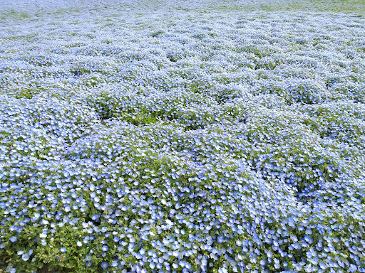 Have visited here in end Apr. The Nemophila is almost all bloosmed, very nice scenery particularly with a clear blue sky. You can move forward to other parts of the garden to see different flowers. You can rife bikes there too. Great to go with kids. Need to spend a whole day there.