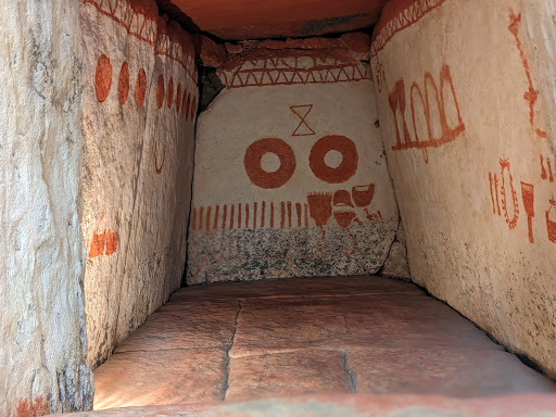 秋の石室公開に合わせて訪問。ここは関東地方では屈指の装飾古墳。赤い蛇の目や砂時計状の紋様はゆるキャラ虎塚ちゃんにも反映されています。石室見学は説明付きで約5分だけ。約5名ずつ入室。要マスクで湿度高いためメガネがすぐ曇ってしまう。近くの埋蔵文化財調査センターにレプリカあるのでどこに何があるか覚えてから石室に入ることを推奨する。石室奥はよく見えるが左右の壁は見えにくいから。 700m位離れた所に国指定史跡に昇格した十五郎穴横穴墓がある。歩いて行けるけれど赤土の道なので、雨の後は足元注意&しっかりした...