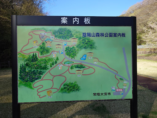 陰陽山森林公園の中にある陰陽神社は、水戸藩第2代藩主の徳川光圀が山頂の2つの大きな岩を見て感動し陰陽石と名付なづけ、鳥居に自ら「陰陽山」の額を書いて石に刻ざめせ社殿を造営したもので、現在も家庭円満の神として信仰を集めているそうだ。 園内にはヤマザクラやツツジ、サツキ、アジサイなどが四季折々に咲き誇る トイレは、小便器が...