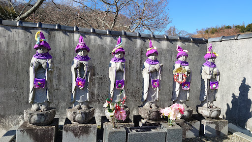 児玉三十三霊場一番、不動明王。無人のお寺です、本堂に近い方の門左側に6体のお地蔵さまがいつも、可愛い洋服を季節ごとに変えて着ています、どなたか手先が器用な方が春夏秋冬に作ってくれているみたいです。冬場は寒くないようにマフラー🧣や毛糸の帽子など可愛らしい。印象が華やか...