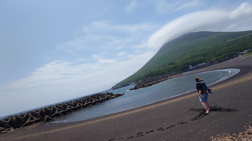 'Burn your feet' black sand beach, even in May. We were on a train trip so we didn't swim but the water was clear and warm. Bring ALL your own drink and food, the little town has nothing to offer (2019). I have to think that this beach in high summer would cook you even if you brought shade, but it's an uniquely beautiful beach and area and I can't wait to see it in the summer of 2021 if I survive 2020. Made it on bicycle in the hot summer of...