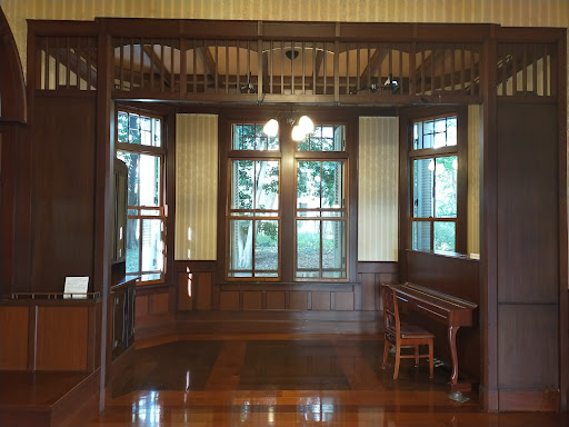 今は豪壮な日本家屋は失われ洋館部分だけとなったが、かつての姿は想像できる。 ただ、建設当初からのものはどれほど残っているのだろう?文化財として中途半端な感じは否めないものの、暫し館内の冷房を嬉しく思いながらゆったりとしたひと時を楽しめる。
