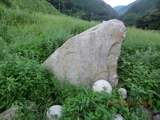 以前はここの場所は私有地の作業場で重機などが置いてあり、玉川は上流の渓流からここで川幅を広げ河原の夏草は自然そのもで(見るからに蝮でも出そうなという意味で)ここから北側の自動車道側まで夏草で覆われ、ここに表面ははっきりしてないのですが、玉川磨崖仏とか玉川河原の磨崖仏とか言われ(呼称ははっきりしない)、石仏探し系の人には有名な磨崖仏があります(今もあるかどうか、近くの地蔵院とか集会所の庭に移されたか…)井手町の観光案内ボランティアの老人の話では、昭和28年の山城大洪水で流失したと思われるのでこの草地に持ってきたと言うことでした。今は公園となってパパ、まま、子供たちで賑わってるようですね、国道24号線から右折(奈良方面からは)すればあっという間に来れます。古い時代の(2012年頃)の磨崖仏と河原の写真をアップしておきます。川床が自然のままですね、⭕保川は飛び石じゃーなくて飛びコン、他も...