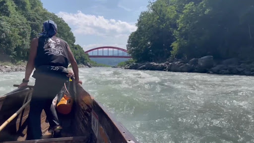 船頭タケちゃんの勇ましい後ろ姿に激流のなかにあっても不安ひとつ覚えることはありませんでした。