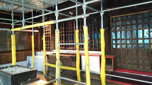 階段を上がりきれば、古式豊かな境内に《本 堂》が有り、今は屋根瓦の修理中の様子ですょ👌。