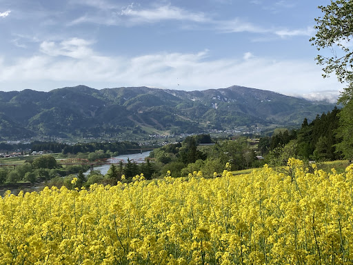 菜の花は信濃川の斜面だけでなく集落側にも咲き誇っており、360°素敵な光景でした! 個人的には信濃川の大関橋のある北側の景色が素敵だなと感じましたが、東側の集落を背景にした景色も穏やかな気分になり最高です!