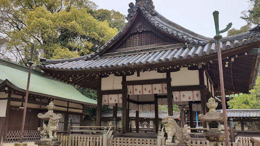 Read more機織り技術の伝来に関連する由緒ある落ち着いた神社です。 南にある神社参道の階段登り口に、石の台座部分だけが残されています。石灯籠か狛犬か、もしかしたら鳥居が建っていたのかもしれません。その台座には「五軒問屋」と刻まれています。五軒問屋とは江戸時代、大坂・伏見町で長崎からの輸入反物を扱う特権を持った商人たちのことだと思われます。 反物や生糸など繊維関係の商品を扱う商人たちが、機織りの神様を祀る神社へ石灯籠などを奉納したのでは、と勝手に想像しています。