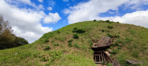 Read more県内最大の前方後円墳という事で、近辺には他の古墳もあり、なるべく多くの実物を見てみたかったので立ち寄りました。 最初、近くまで車で行けるような話を聞いていたのですが、ちょっと上がったところの十字路で、真っ直ぐか右か分からなくなったので、下の駐車場に停めて歩いて行きました。 上ったところの右側が古墳の有る方ですが、道路が所々陥没している所が有るので、乗り入れずに下に停めた方が良いと思います。 3箇所ぐらい陥没しています。 古墳ですが1月と言う事もあり、古墳と辺りに生えている草が一面枯れて白茶けている光景でした。 季節が夏ぐらいだと一面緑なのかもしれません。 草むらを歩いて古墳を見ていると、昔の雰囲気を感...
