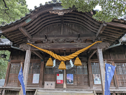 Read more2017/08訪問 せっかくとびしま海道を走るなら一番端までと言う事で、ドライブ途中に立ち寄りました。特別何かあるわけでもない普通の神社。 陸続きで来るには広島から行くしかないのだが、やたらと「愛媛ナンバー」が駐車場に目立つなと思い調べてみたら、ここは愛媛県でした(笑) そう、ここは「陸路で行く際は、広島県からしか行けない愛媛県」です。 社務所も見当たら...