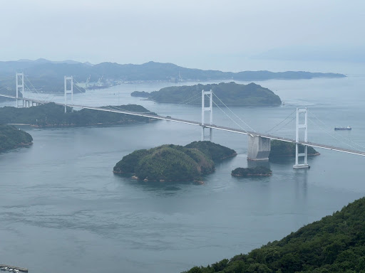 The view is...one of the best views I've ever seen. Not only are the Kurushima-Kaikyo bridges spell-binding, there's a 360 degree view over the sea and a stunning panorama of Imabari.