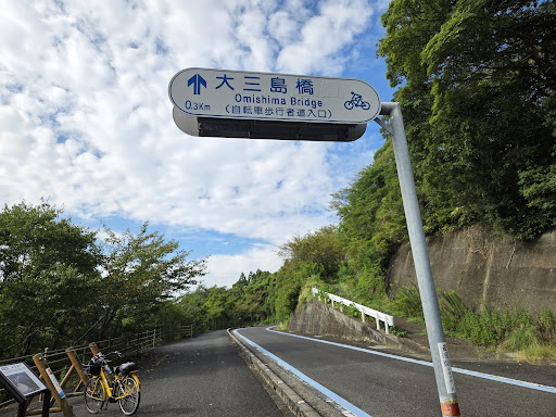 Visited as part of the Shimanami Kaido, along Ehime Prefectural Rd 21. It's a tough cycle but there is a hidden cycle path off the main road that makes it easier.