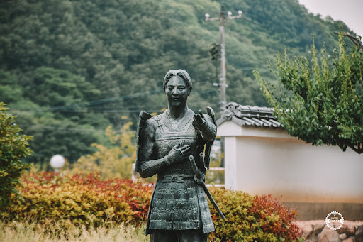 She slew the commander who mocked her, and in the ensuing battle, she lost her lover. It is said that she discarded her armor (where today it supposedly rests at Oyamazumi Shrine), took a boat out to sea, ringing a bell still grieving for her lover. And that people can still hear it sometimes...