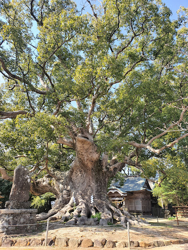 Read more伊万里市の国道204号を車で走っていると、巨大な木と神社の鳥居が見えたので立ち寄って参拝しました。 3月下旬に参拝しました。 青幡神社という神社でした。 伊万里市東山代町にあります。 境内には佐賀の名木100選に選ばれる「青幡神社の楠の木」が静かに、どっしりと構えていて、推定樹齢は500年だそうです。 楠の木の大きさ、佇まいに神々しい感じを受けました。 本殿に参拝した後、境内の他のやや小さめ社を参拝していたら、遠くから電車の音が聴こえました。 ふと見ると松浦鉄道の電車が軽快な音を響かせながら、境内の南側の少し先の線路を通過していきました。 境内から見る鉄道車両、電車の音に風情を感じました。 鉄道を感じたほんの少しの時間でしたが、時間の緩やかさ「ゆったり感」を体験しました。 神社と楠の木が合わさって清らかな空白になっているのだと思いました。 国道側に駐車場がと鳥居(北側)が有りますが、どうやら厳密な正面の鳥居は神社の本殿の向きや参道の造りから東側が正面の入り口みたいです。 神社好きの方々も、ドライブの方々も気軽に寄...