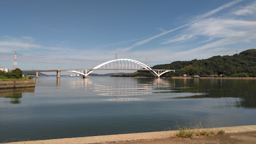 令和7年1月7日いい天気の日で景色も良かったです、車を降りて渡って見たかったですが、橋の袂に駐車場のようなものはありませんでした。伊万里港七ツ島地区と同港久原南地区を伊万里湾を跨ぎ結ぶ、長さ651m、幅21.3m、高さアーチ部50....