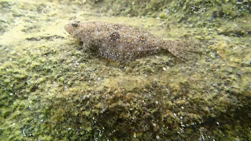 そして、一番はなんといっても正面左側、黄色い鉄塔が立つあたりだ。ここは、水深も浅くて子供でも足が着くところがあるのに、もう、生物の宝庫だった! 小魚もいて、わりと大きなカニもいて、珍しいカレイやカワハギの幼魚もいて、50cm前後のバカでかいボラもいる!