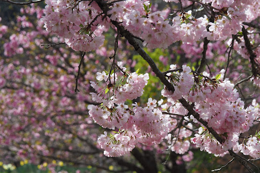 Read more八重桜の時期に行きました バラの季節に見に来た時よりも奥まって高みに咲いていたせいか 地味に思えたのですが 桜の下に入って眺める景色はとても美しかったです ウコン桜と...