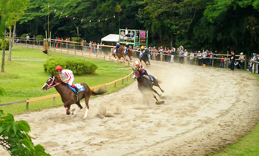菰野といなべを結ぶ県道を挟むように立地しています。 多度と同じく、草競馬があります。 新緑の中、駈ける馬を間近で観戦できる、のどかでとても素晴らしい公園です。