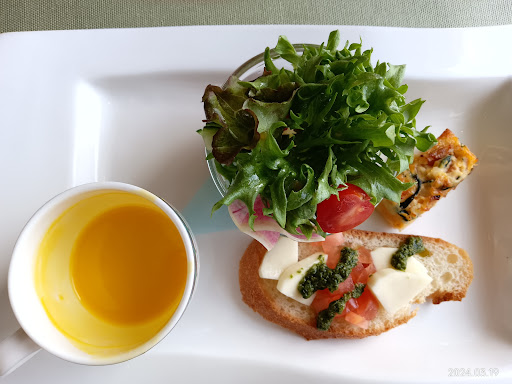 ランチはレストランファムネットにて『選べるイタリアンランチ』2,750円にしました。 メインをミラノ風カツレツ、鶏もも肉の香草パン粉焼、サワラのソテーの3つから選べるようになっていました。私はミラノ風カツレツを選びました。 オードブルはおいしかった(特にサラダ)のですが、他はそれなりで、やっぱりスキー場まで食材を運んでくるのは大変でその分が価格に反映してしまうからかなぁと思いながらいただきました。(カツレツは一口、パンプキンスープは少し飲んでしまった後の画像になります。ごめんなさい。) 出発前の外人(主にアジア系)の方達が、アラカルトメニューを頼んでおり、気軽に利用できるのは良いかと思いました。