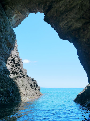 海上交通が主たる時代だった頃は地図上に史跡名勝の「∴」が表記されていました。 昭和初期の郷土書物「丹哥府志」にも挿絵とともに紹介されています。 (※グーグルさんに、「∴」うってもらいました。感謝) 古くは藤原保昌とともに和泉式部が、藤原俊成がおとずれたであろう、昔から変わらない洞門は、今もなお形を変えず毎朝日の出を迎え、中から見る日出はさながら天岩戸開きの様相で、「巌門(いわと)」といったものだと感銘を受けます。 舟でしかいけません。北及び西の風が吹くときや波がある時、冬時期には荒天が多く、訪れるのが難しい場所。 カヤッカーの皆さんに隠れた人気ではありますが、気象情報や、海上予報等十分にご留意いただき、無理なく楽しんでください。
