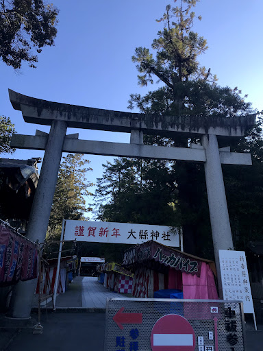 大縣-おおがた-神社,と読む。南隣の小牧市にある田縣さまとともに(なんでこんな近いところに並んであるんだろう?)、こちらもそうなんですが、大縣さまは犬山市にあってどちらかとゆうと、女陰系で、普段何もないときは、さしあたって露骨なものは目立たないのですが、お祭りや効験はたいへん強力であり、春のお祭り(豊年祭)では一目で分かる特徴的な"おかめ"の山車が参道を往来したり、天狗さんが鼻先高く闊歩したりと、犬山の神社なんですけど、近隣の春日井や小牧からも崇敬者が集うたいへん大きな神社で、尾張二ノ宮でもあります。名古屋鉄道小牧線の楽田駅を下車して、踏切を渡ったそこからもう参道が始まっており、あとはお山の方角に向けてひたすら歩いて行けば境内に入れます。信貴山の裾野に境内を構える神社なので、近づくと徐々に登り勾配となり、通常だと鳥居のすぐわきにクルマは停められます。駅から来る方は、一直線に30分も歩けば着きます。鳥居をくぐって左手台上に授与所があり、本殿は正面に西を向いてあります。この神社は春先の枝垂れ桜が有名で、豊年祭が終わる辺りから、お花見のお客さんで混み合います。象徴的なものには、「姫石」が境内にあり、これは形状的に女の子用ですね。奥には、駅名の由来になった"楽田神社"も鎮座しています。これは、戦没者系のお宮です。やはり、安産子授けが願意のトップにあり、授与品もこれらに力を入れた内容で並べられています。大縣神社の神札(神社大麻)は、司庁の小大麻と寸法はほぼ同じなんですが、より厚いお札になっています。 昇殿祈願は護国系を重んじた祭事です。 犬山市の神社なので、年に何回か市のゆるキャラの"わん丸君"が境内にやって来るのですが、このキャラ守りは大縣さまではなく、市内の針綱さまで求めることができます。 クルマで参拝に来るときは、田縣さまと同様に小牧ICを降りて、田縣神社を左に見ながらそのまま稲置街道を北上、犬山市に入って若宮の交差点を右折すれば参道にそのまま入って来られます。全国的に見ますと、岩手の枋ノ木神社(こぶのき)神社、茨城の高道祖(たかさい)神社、川崎の金山神社、お隣の田縣さま、奈良の飛鳥坐(あすかのいます)神社とともに、わが国五大性神...