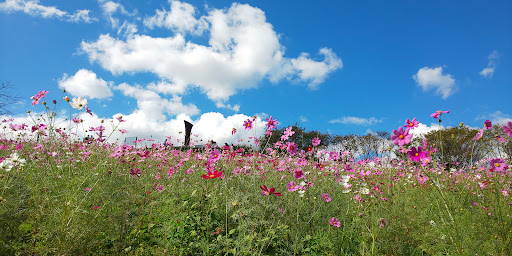 Read more2021/10/10です 8分~9分咲き?蕾もあるので1週間後も大丈夫かもしれません 日曜日の13時頃でしたが、午前中に来ていた人との入れ替りだったのかスムーズに駐車場に入れました ベンチはありますが、陰ではありません、木の陰の芝生斜面に座ってランチしました。大きなアリに注意です、直ぐ登ってくる! 小さな子連れの祖父母をふくんだファミリーが多くみえていましたが、広いので密にはならないですね 陰は風が気持ち良かった トイレも何ヵ所もあるので◎ 方角的にコスモス側の夕陽は見れません、普賢山と朝陽とコスモスはいけます 途中の田んぼは丁度稲刈り日だったようで、かろうじて黄金...