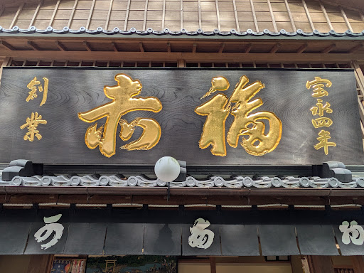 이세신궁 내궁 앞 오카리요코초에는 찻집풍의 본점이 있다. 예년 여름에는 '아카후쿠아이'라는 말차 얼음에 아카후쿠 떡을 넣은 것이 제공된다. 겨울에는 아카후쿠 떡과 팥소를 사용한 '젠자이'가 제공된다[1]. 이 '아카후쿠 빙수'와 '아카후쿠 젠자이'는 본점 외에도 이세시마 지구, 나고야 지구, 오사카 지구의 일부 직영점에서도 계절 한정 상품으로 제공된다.