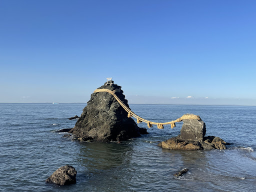 Read moreIn the winter, it's very cold and windy, but worthy. Not crowded on Friday afternoon. We took CAN bus from Naiku-mae to Ise Sea Paradise -mae, approx. 26 minutes, then passed through a carpark, and Futamiura Jinja Shrine. The Wedded Rocks were in the sea off Futami Okitama Jinja Shrine. The 9-meter husband rock and the 4-meter wife rock are joined by a Shimenawa (thick rice straw) rope. It the past, Japanese thought theres rocks were a gate separating the divine world from the human world. Now, they represent happy marriage. The rope will be renewed every May, September, and December. From May to July: The sun rises exactly between 2 rocks. From November to January: The full moon appears between 2 rocks