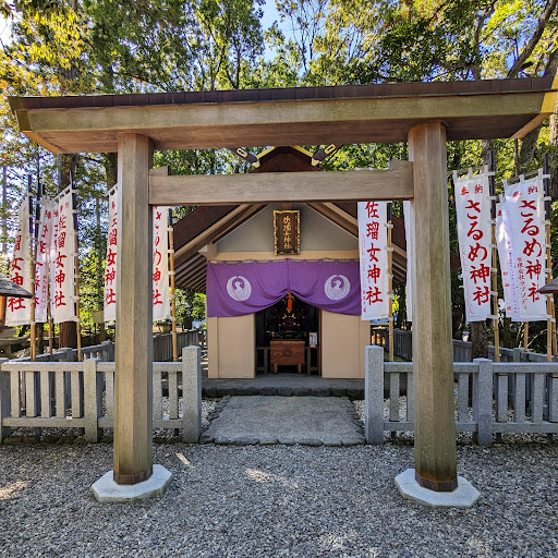 猿田彦神社の境内にある小さな神社。 芸能や芸能の神様、縁結びの神様が祀られている神社なので、幸せな結婚を願う人はもちろん、出世を求める有名スポーツ選手やお笑い芸人、ミュージシャン、俳優なども多く、のぼりがたくさんある。 いろいろな日本の著名人が主催する神社周辺。...