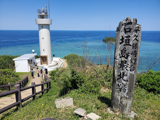 Read more平久保崎燈塔位於石垣島最北端,立有一個最北端的標示牌,居高臨下鳥瞰燈塔跟藍天碧海,風景優美,值得花費一個小時的車程前來,只是停車的位置有限,因此可能需靠路邊等待空位,所佔區域不大,大部分遊客停留時間也並不長所以等待不會太久。有廁所有提供衛生紙,乾淨度以日本標準來說勉強通過,但門口貼有注意蛇類的警告,畢竟是最北端無人居住的山邊廁...