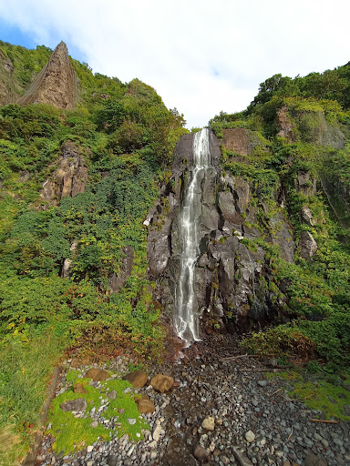 落差25ⅿ、山間から直接海に流れ落ちる白銀の滝ですが雪解けの時季は水源である暑寒別連峰の雪代で水量が増し流幅が広がるので春頃が見頃です