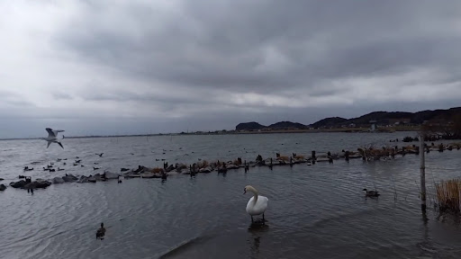 Read moreカモの仲間数種とコブハクチョウ、コハクチョウ、オオハクチョウ、ユリカモメが身近に観察と餌やりが出来る場所です。体の黒いオオバンも来ています。エサはお米、食パン、もみがらを決められた場所で水面に投げ入れてあたえるように看板に注意書きがあるので、ぜひルールを守って餌やりを。スナック菓子や菓子パンは野鳥にはよくないので与えないことを守って下さい。包装袋やクロージャーはポイ捨てしないで環境保全のため持ち帰りましょう。毎年来てもらえるようにあたたかい気持ちで見てあげて下さい。3月初旬くらいまでは滞在していると思われます。オオハクチョウとコハクチョウは早朝と夕刻に見られ、それ以外の時間帯は近隣の田んぼなどへ行っているため水辺にはいないことがほとんどです。餌で与えられる食パンなどの購入出来る販売店は付近にはないので事前にスーパーやコンビニなどで購入してからこちらへ来るとスムーズです。カモ達がたくさんいるので、水辺に行くときは足下に集まってくるので小刻みにゆっくり歩いて踏まないように気をつけてあげてください。また、白鳥に直接あたえる場合はくちばしの内側に歯のようなギザギザがあるので、小さな食パンだと指先もかまれることもあるので注意が必要。コブハクチョウは他の種類に対して歯も少し鋭く攻撃性が高くカモなどを追い払う行動も見られますので餌を持っているときは若干の距離を...