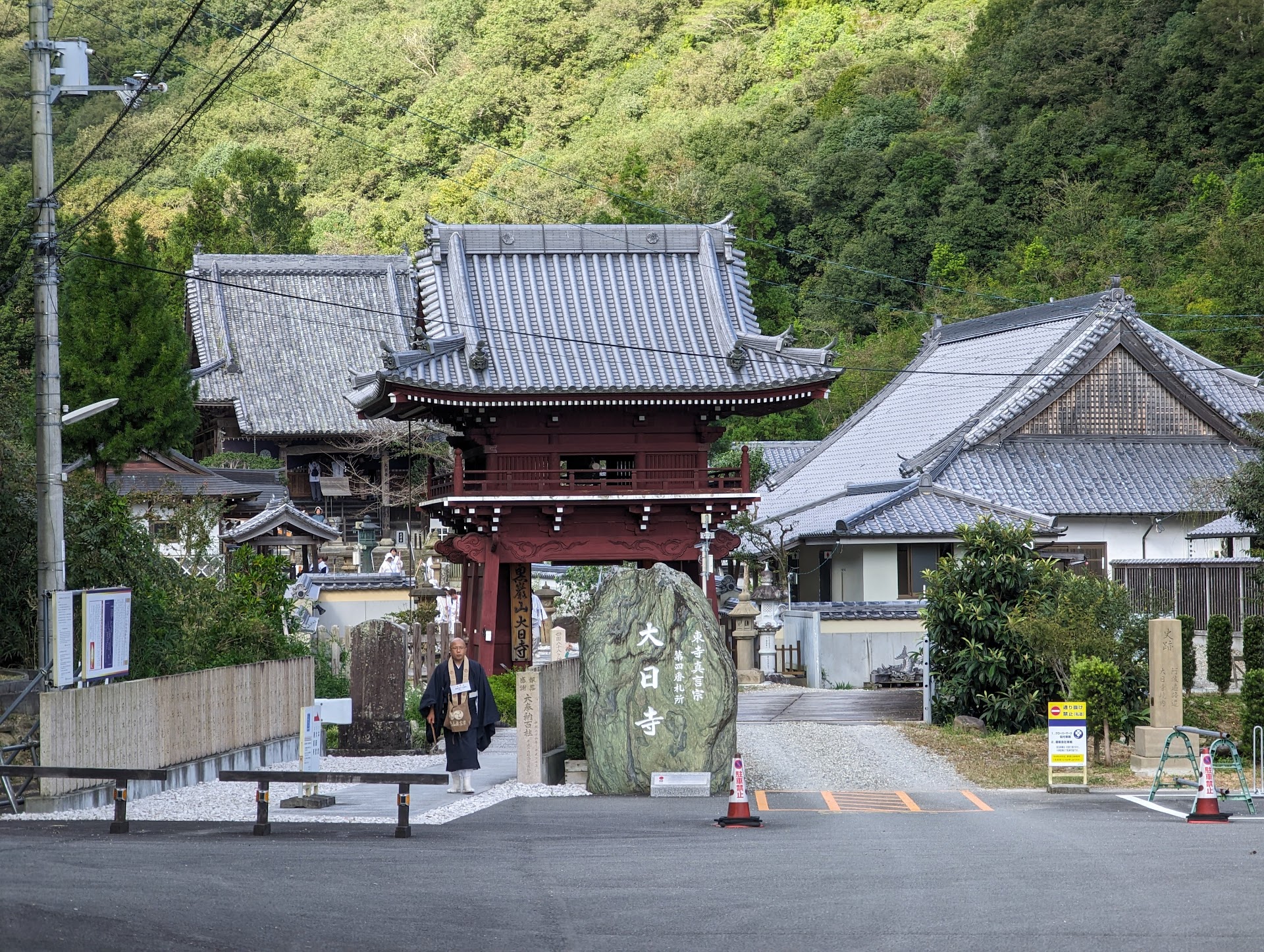 8月7日でしたが、雨のため暑くもなくある意味恵まれたお遍路となりました。初めてのお遍路でお遍路みちにある案内矢印や趣のある道路や素敵な塀やお宅に目を奪われながら今泉寺から大日寺を目指しました。約5km1時間ちょっと道のり。 やっと見えてきた大日寺。山裾にあり、それは立派な建物で、見どころも満載の寺院でした。 まずは入口の鐘楼門が素晴らしい。 中に入ると西国三十三観音霊場にまつわる御像が安置されています。四国遍路でなければゆっくり見て回りたいところ。スケジュールを決めたので仕方ないが、ここに来てまで時間に追われるのもなんか違う気がしますね。