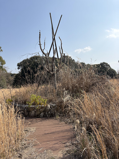 Read more小さめですが駐車場があります。そこからローラー滑り台が見えていて、滑り降りると駐車場に出ます。駐車場からの階段を上り切ると滑り台の乗り口があります。開けていて池があり散策できるようです。 右手から小高い東屋へ登れます。その奥へ進むと開けた広場があります。 東屋への階段も、開けた広場も手入れがされていない様子で荒れています。