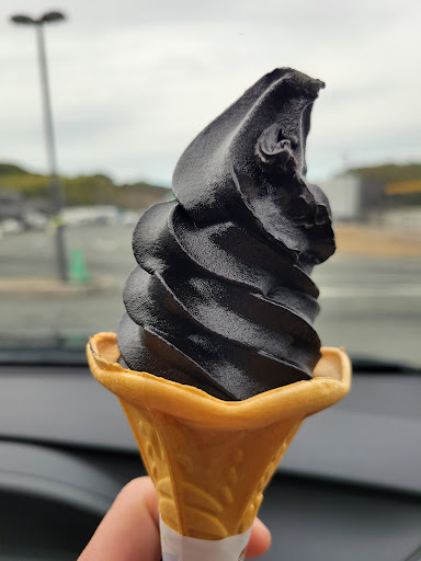 さて、目的の石炭ソフトクリームですが… フードコート全店閉まっていましたので石炭ソフトクリームを諦めかけていましたが、フードコートの入口辺りに小さい冷凍庫があり、そこに石炭ソフトクリームが売られていました。 ん?……450円? あれ?情報では300円ぐらいじゃなかったかな? たぶんパッケージ代が入っているのかな? とりあえず無事買えて味を確認…… 固い……アイスクリームみたい(笑) まぁ、冷凍庫に入れていましたので固まるのは当たり前ですよね(笑) 味は何かチョコ味かな?って感じです。 もちろん美味しかったです♪ ただし、歯が黒くなりますので人と会う前は控えた方がよろしいかと。 注意点は寒い日にトイレ利用は必ず服を沢山着こんでください。 コンクリートなのでト...