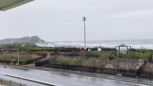 2階に上がると屋上で、海側が見えました。海自体は緑地の向こう側にあったので、見えませんでした。 見えなくて少しほっとしました。