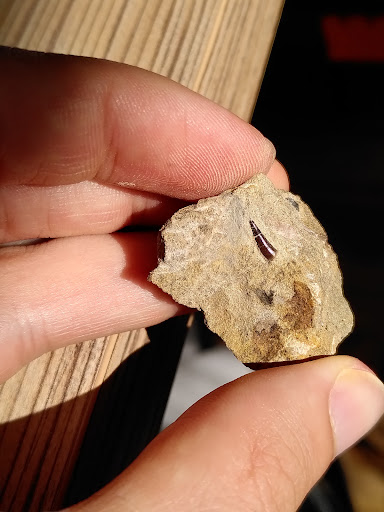 Although I don't speak any Japanese I was able to communicate using Google Translate and Google Lens. Google Lens was also helpful to translate all information in the museum. Hopefully they will add English translations at some point which would make it easier for non-Japanese tourists. The excavation was very interesting and I found a tooth of an Enchodus (fish). One photo is after some preparation and the other one as I found it with the tip still covered. The stone is very soft and easy to remove. If you are a fossil enthusiast I can totally recommend Iwaki Ammonite Center even if you don't speak Japanese. But make sure you have a translate app. As I was traveling through Japan with a Japan Rail Pass I walked there from Suetsugi station. It is a nice 60-90 minute walk and you can also pass by the place Futabasaurus...