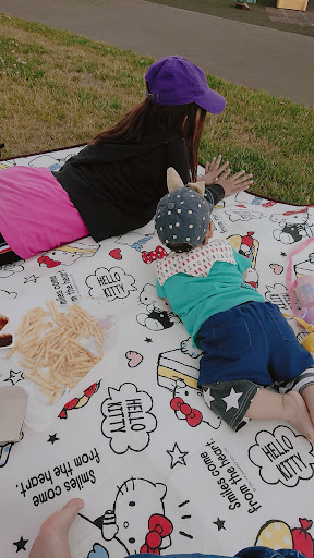 平日の日中は休憩に来るサラリーマンの車。 休日は子どもたちと家族連れで賑わう、芝生と遊歩道が綺麗な公園です。