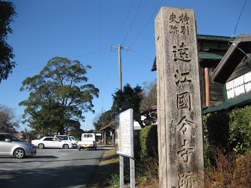 Read more磐田市は、奈良時代の律令制度において遠江の国府(今でいう県庁)がありました。 ちなみに遠江とは、当時の都があった近畿地方から見て、近い淡水湖の琵琶湖(近江)に対して、浜名湖は遠い淡水湖のため、この辺一帯を遠江と呼ばれた事が由来。 敷地は180メートル四方。東大寺同様、南大門から入って正面に回廊と金堂、左手に七重塔が配置されていました。 建物は残っていませんが、遺構は、周囲の土塁や植林七重塔の心礎石(中心柱の基礎石)があります。 ここの発掘をきっかけに全国の国分寺の発掘の基礎となったこともあり、国宝と同等である国の特別史跡となっています。 今は公園となってますが、訪れたときはシロツメクサが伸び放題で、原っぱという感じ。誰もおらず、ち...