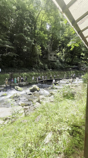 This was so fun. It is a stocked stream with rainbow trout and amago. You fish with a fixed line off a long bamboo stick. We caught two, one little guy and a nice trout maybe 10-12 inches. We stock in Canada but not quite like this, at least in my area. The scenery is spectacular!