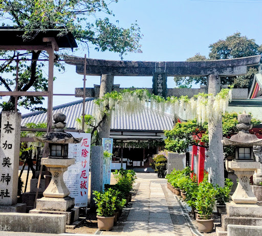 奈加美神社:大阪府泉佐野市中庄834に鎮座 主祭神:誉田別命(応神天皇・八幡さま)、息長帯姫命(神功皇后・応神天皇の母君)、比売命 御由緒:奈加美神社の創建時代は平安時代初期と考えられており、旧の社名を大宮神社といって、この地域の中心の神社です! 新しい名前の由来は中庄の「な」上瓦屋の「か」湊の「み」を取り、3町合同の願いをこめて名づけられたとの事です! 主祭神・誉田別命(八幡さま)を始め多くの神々を祀り、御神徳は厄除開運・安産な...