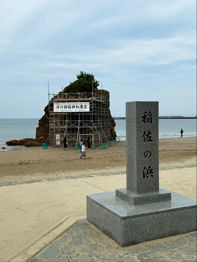 "Inasa-no-Hama(Inasa Beach)", the stage of the nationally-handed, kunidori myths ・Inasa Beach It is a beach famous for setting the "Kuniyuzuri" myth and "Kunibiki" myth on the coast about 1km west of Izumo Taisha. At the back of the beach is Okuninushi, a rock that was negotiated for the country's transfer, and to the south of the coast is the Nagahama coast, which is said to have become a rope connecting the islands at the time of Kunibiki. It is said that eight million gods from all over the country will land in Izumo from this beach on October 10 of the lunar calendar, and it is still one of the power spots where the Shinto ritual is held.