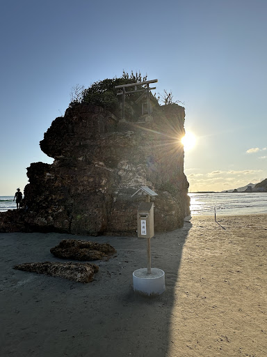 I visited with my wife, and we were lucky to arrive as the sun was setting behind the shrine. The light was magical, casting long shadows across the sand and illuminating the little torii gate on the rock. It’s peaceful and powerful at the same time, with the sound of the waves and the quiet gestures of locals who stop to bow as they pass by.