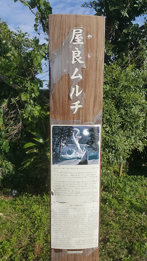 Read more昔、比謝川の上流の川深くジャー(大蛇)が棲んでおり、村人達に害を与えていた。その頃沖縄ではヒヤー(日照り)が続いて、村人達を困らせていた。なんとかして大蛇を退治しなければならないがどうしたらよいのかと村人達を困らせていると、ある人が「生贄を出せばいい」と言う。それで村の頭は生贄を募集することにした。そして「生贄になった者の家には褒美を出す」と立て札を立てた。すると、ある村の貧しい暮らしをしている娘が、親孝行のために生贄になる事を申し出た。生贄となる日娘は支度をして屋良ムルチへ行き。覚悟を決めて目を瞑り座って待っていた。すると龍神(白竜)が現れ、大蛇を退治した。 今でも毎年旧暦6月15日には「ムルチ御願」が行われ、龍神に卵を3つ捧げて村人の健康と...