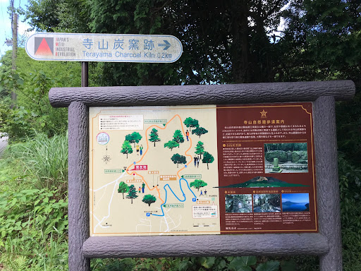 まずは「寺山炭窯跡」に着くと、駐車が一台もなく「やはり人気がないのかね」と二人とも不安に歩いて行くと、 寺山炭窯には黒いビニールカバーがかけられ見ることができません。2019年の土砂災害の影響のようです。