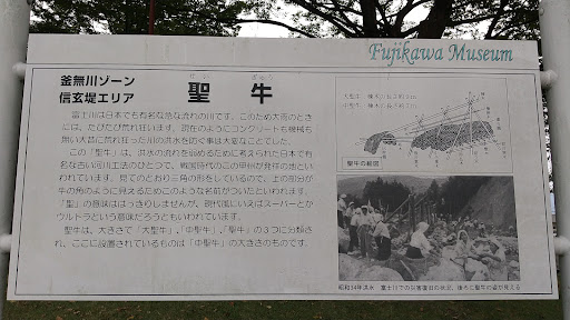 当聖牛は展示用に再現されたものであるが、現在でも釜無川・笛吹川(およびその支流)では現役の聖牛が散見される。 中にはコンクリート製のものも見られる。