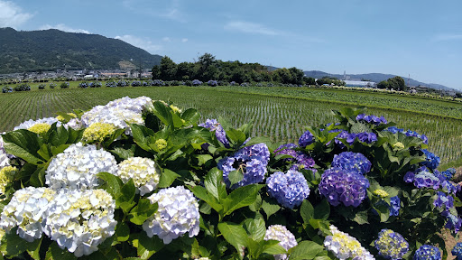 ここの公園がありますが ここ一帯にアジサイが咲いていてアジサイの時期にはここ一帯がアジサイだらけになります! 川とアジサイ 街並みとアジサイ 山とアジサイ 様々なアジサイがありとても楽しめると思います! とても広いので散歩がてら楽しむことが出来ます、道が平で勾配がないので足腰の悪い方、車椅子、ベビーカーなどでも楽しめます! ベンチがある公園もありここを囲むようにアジサイが咲いていて座りながらゆっくり眺める事も出来ます! アジサイの苗など花を販売していたり 地元の野菜も販売していました!